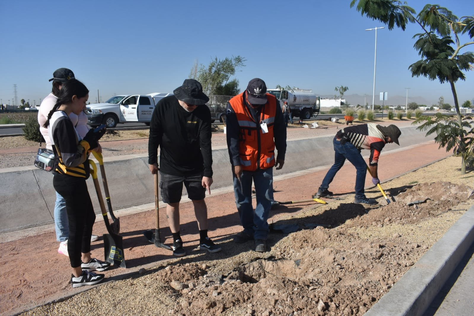 El personal de la Dirección de Parques y Jardines realizó una jornada de reforestación en el parque lineal Can-Am, ubicado en la prolongación de la avenida Tomás Fernández, entre Francisco Villarreal Torres y el bulevar Juan Pablo II. Esta actividad se llevó a cabo con la colaboración de empleados de la empresa Bombardier Recreational Products (BRP), quienes se comprometieron a mantener en óptimas condiciones las áreas verdes de la ciudad.