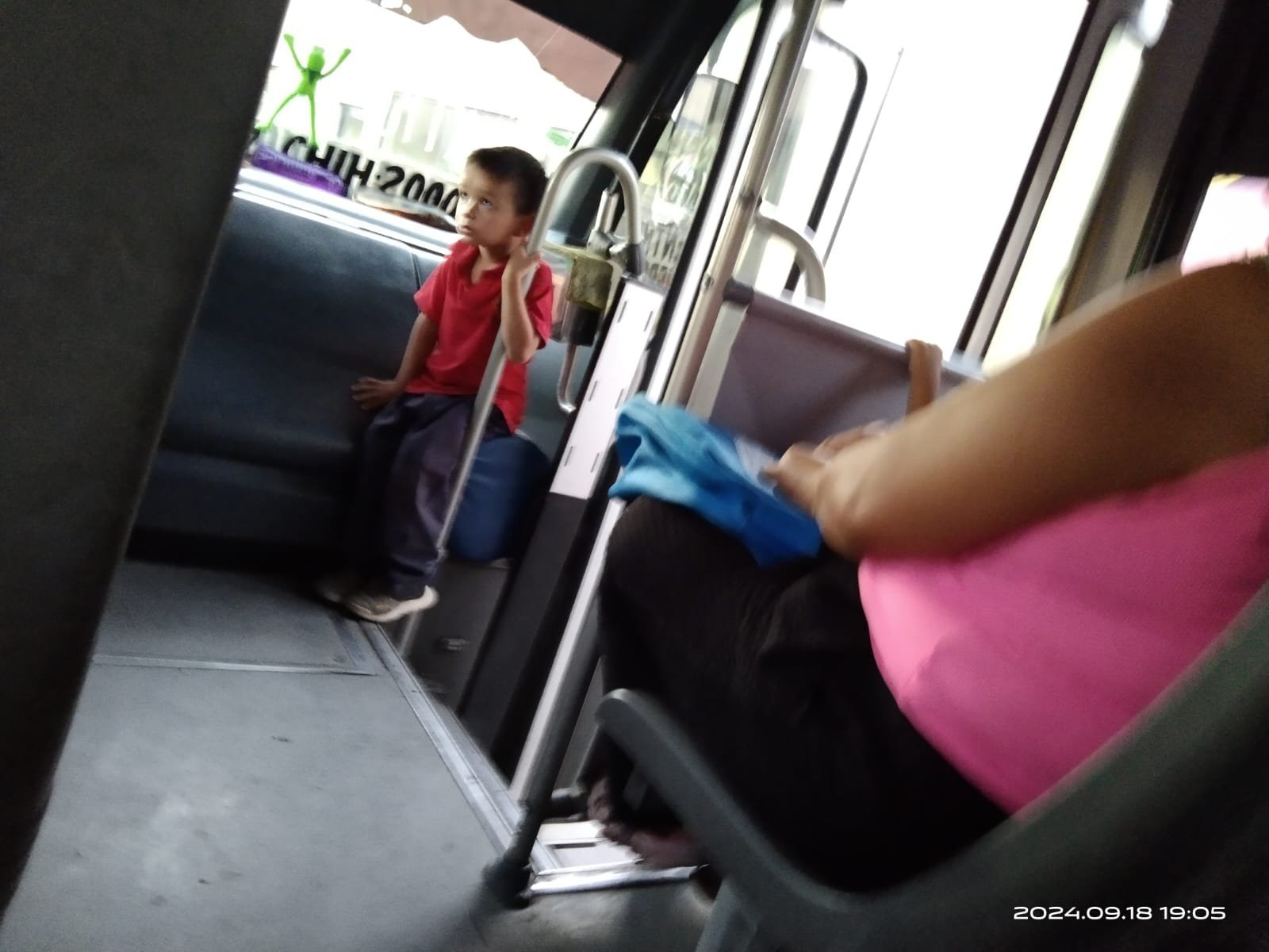 Uno de los pasajeros, un niño, se sentó de inmediato en el escalón cercano a la puerta, exponiéndose un peligro evidente.