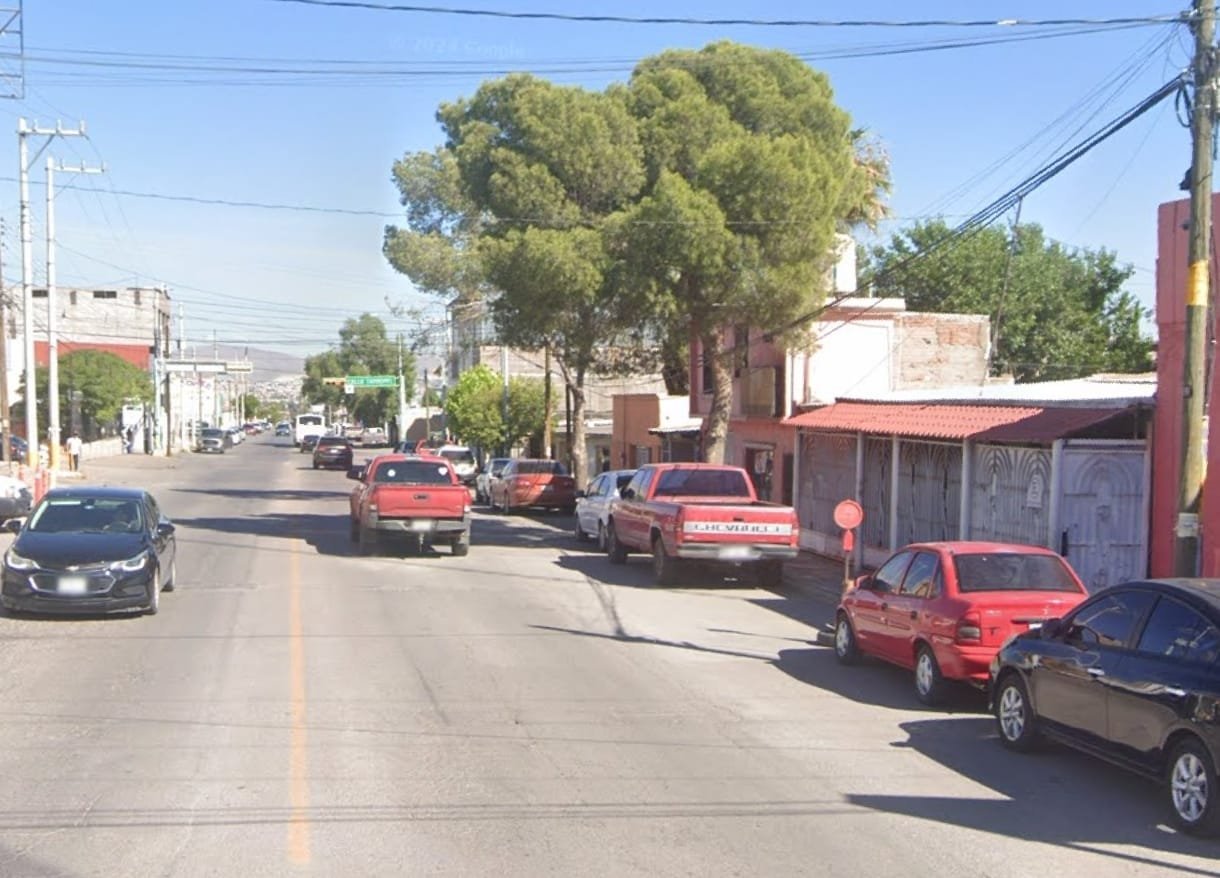 Chihuahua, Chih.- Vecinos de la Calle 46, cerca de la Justiniani, denuncian la instalación irregular de un tejaban en la banqueta que afecta el paso peatonal.