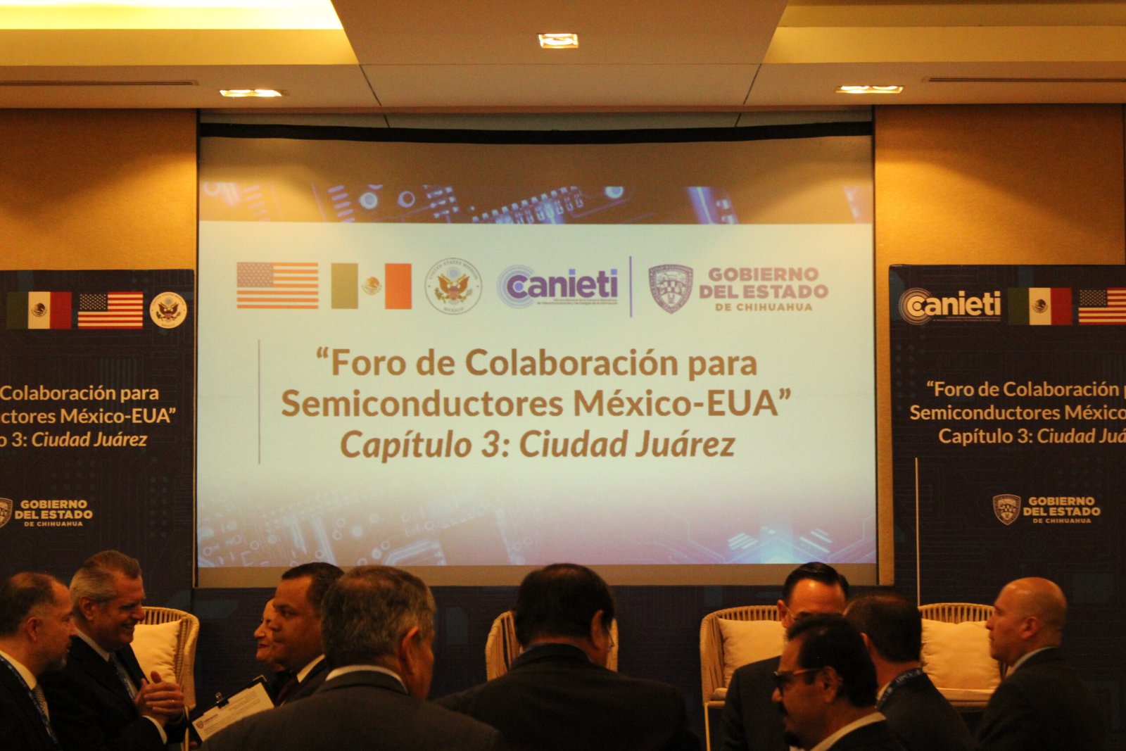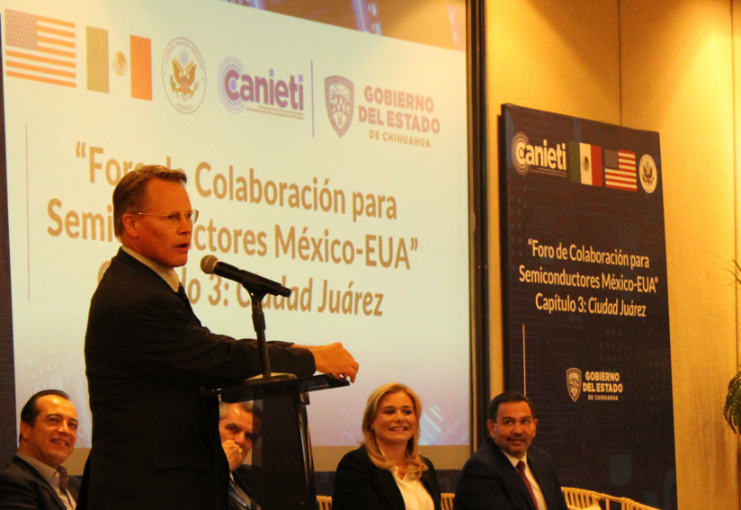 Esta tarde se llevó a cabo la inauguración del Foro de Colaboración para Semiconductores México-EUA, en su Capítulo 3, que tiene como sede esta frontera. El acto reunió a representantes de los gobiernos de México y Estados Unidos, así como a integrantes del sector empresarial y académicos del estado, en el salón de eventos Cibeles. El objetivo del evento es presentar las estrategias y planes para establecer políticas públicas que favorezcan la inversión en el sector de los semiconductores, con la intención de encaminar a México para convertirse en una potencia en el rubro.