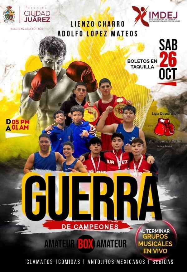 Más de 50 boxeadores amateurs del equipo Castillo, provenientes de diversas colonias de Ciudad Juárez, se encuentran listos para competir en el torneo Guerra de Campeones, que se celebrará el próximo sábado 26 de octubre en el Lienzo Charro Adolfo López Mateos, a partir de las 17:00 horas. El entrenador Gerardo Castillo Sánchez destacó que este evento será una gran oportunidad para que los deportistas demuestren su preparación.