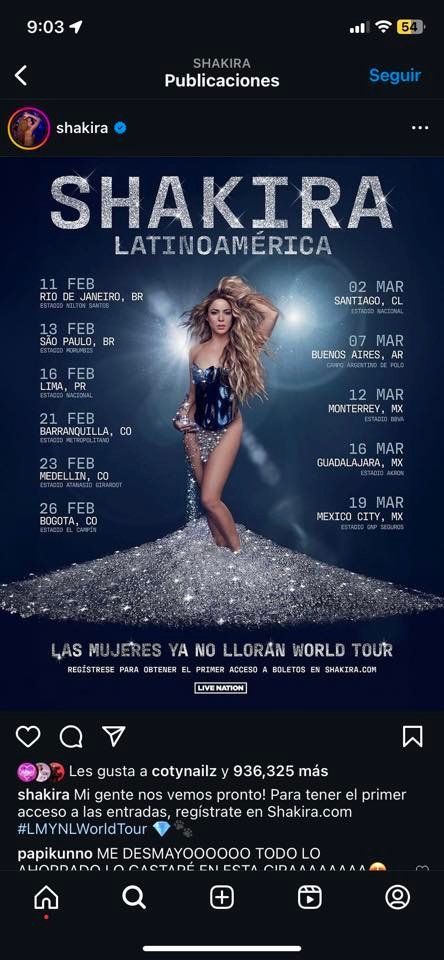 Según la versión, el anuncio oficial por parte tanto de Shakira como de la productora de eventos Ocesa se daría dentro de las próximas tres semanas y la venta de boletos estaría a cargo de Ticketmaster.