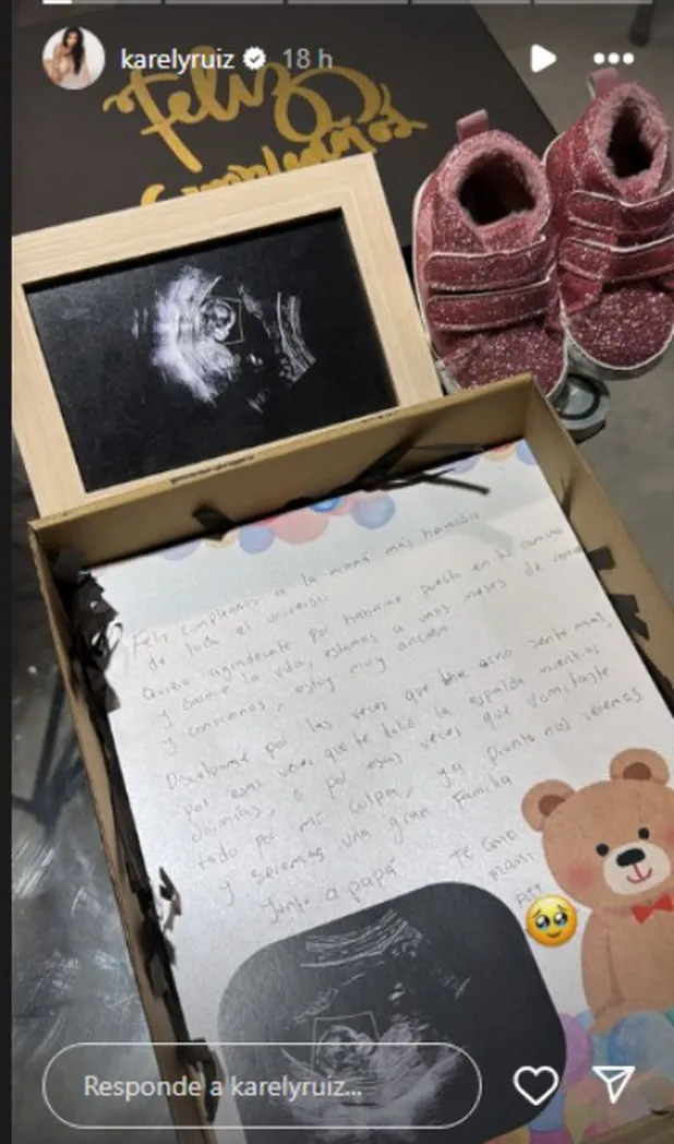 Fue el pasado domingo 27 de octubre cuando Karely compartió una carta en donde se daba entender que había sido su futura bebé quien la había escrito. En el texto mencionaban que estaban a pocos meses de por fin conocerse.