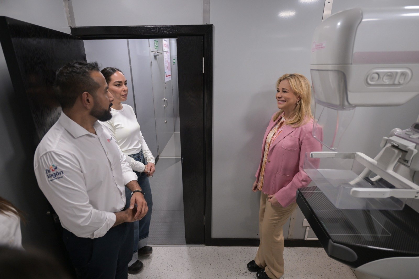 Durante su gira de trabajo en el municipio de Meoqui, la gobernadora Maru Campos recorrió los furgones que forman parte del Dr. Vagón, El Tren de la Salud, que comenzó a prestar sus servicios en esta localidad.