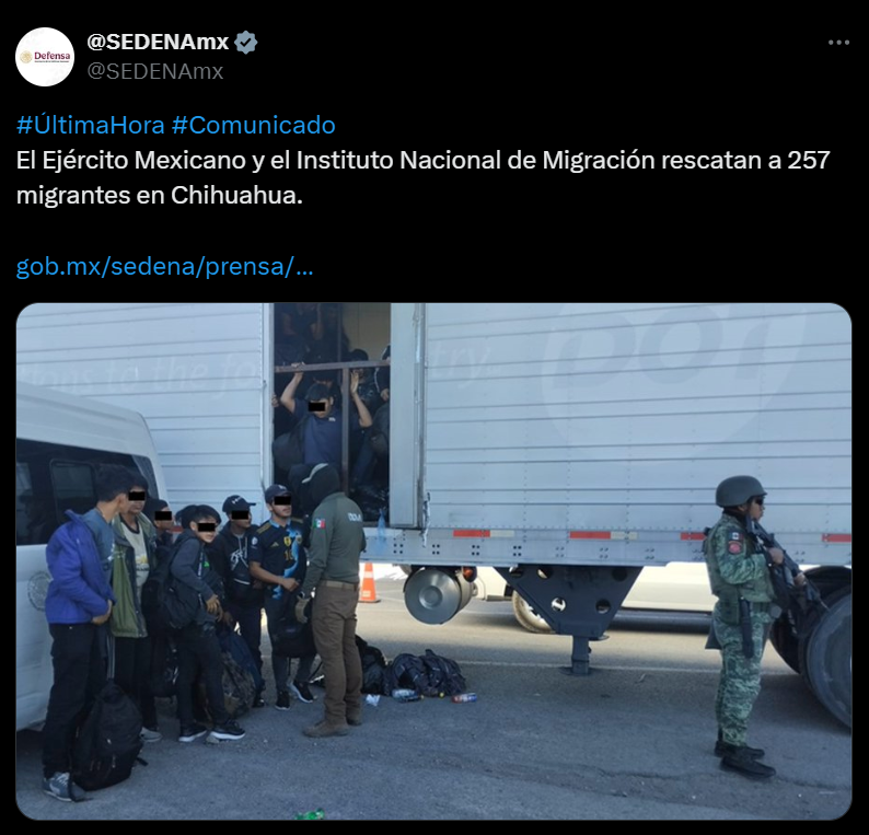 Rescata el Ejército mexicano a 257 migrantes en Chihuahua 10 noviembre, 2024 No hay comentarios Leer más