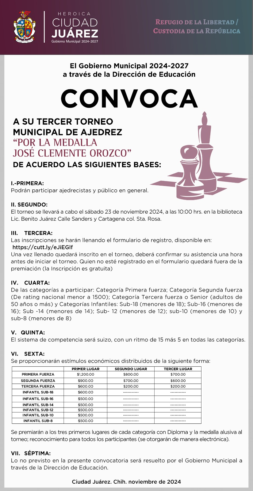 Invitan al tercer torneo municipal de ajedrez por la medalla José Clemente Orozco 21 noviembre, 2024 No hay comentarios Leer más