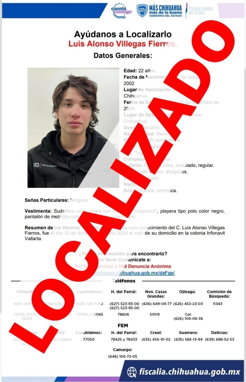 Encuentran a Luis Alonso Villegas Fierros en Chihuahua 15 diciembre, 2024 No hay comentarios Leer más