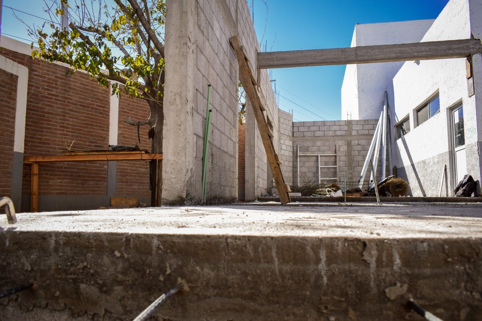 Dentro de los trabajos que se han realizado demoliciones, excavaciones, rellenos, construcción de muros con block y colado de piso con concreto hidráulico. También se realizarán adecuaciones de instalaciones hidrosanitarias y nueva instalación eléctrica.