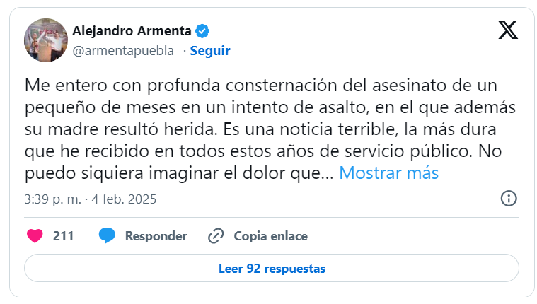 Al no detenerse, los asaltantes abrieron fuego contra el automóvil, hiriendo al infante en la cabeza. Los padres, al percatarse de la gravedad de la situación, trasladaron de inmediato al menor al Hospital General de Zacatlán. A pesar de los esfuerzos médicos, el bebé no logró sobrevivir debido a la gravedad de la herida.