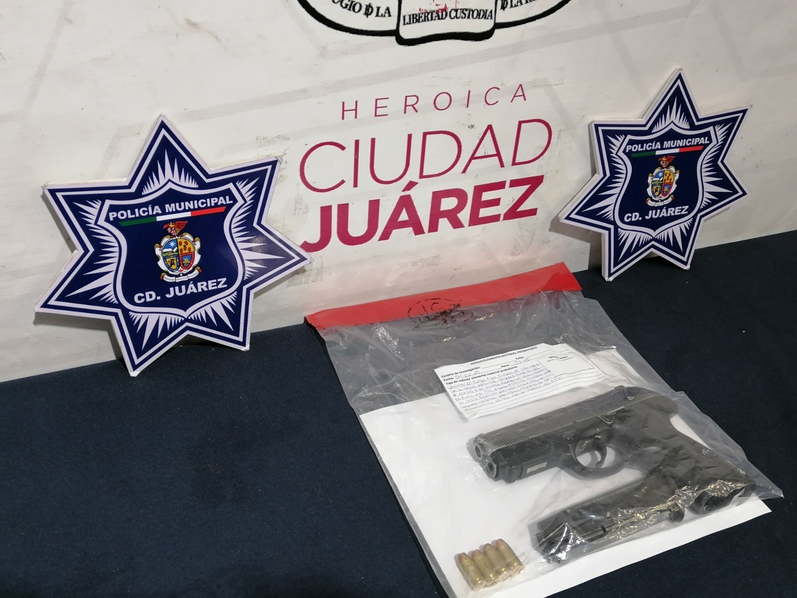 Ciudad Juárez.- Elementos de la Secretaría de Seguridad Pública Municipal (SSPM) detuvieron a Luis Fernando E. V., de 27 años, y Beatriz P. R., de 24 años, por su presunta responsabilidad en delitos contra la Ley Federal de Armas de Fuego y Explosivos. La captura ocurrió en la colonia Tierra Nueva, luego de que la pareja fuera sorprendida en un vehículo circulando de manera errática e imprudente, poniendo en riesgo a otros conductores.