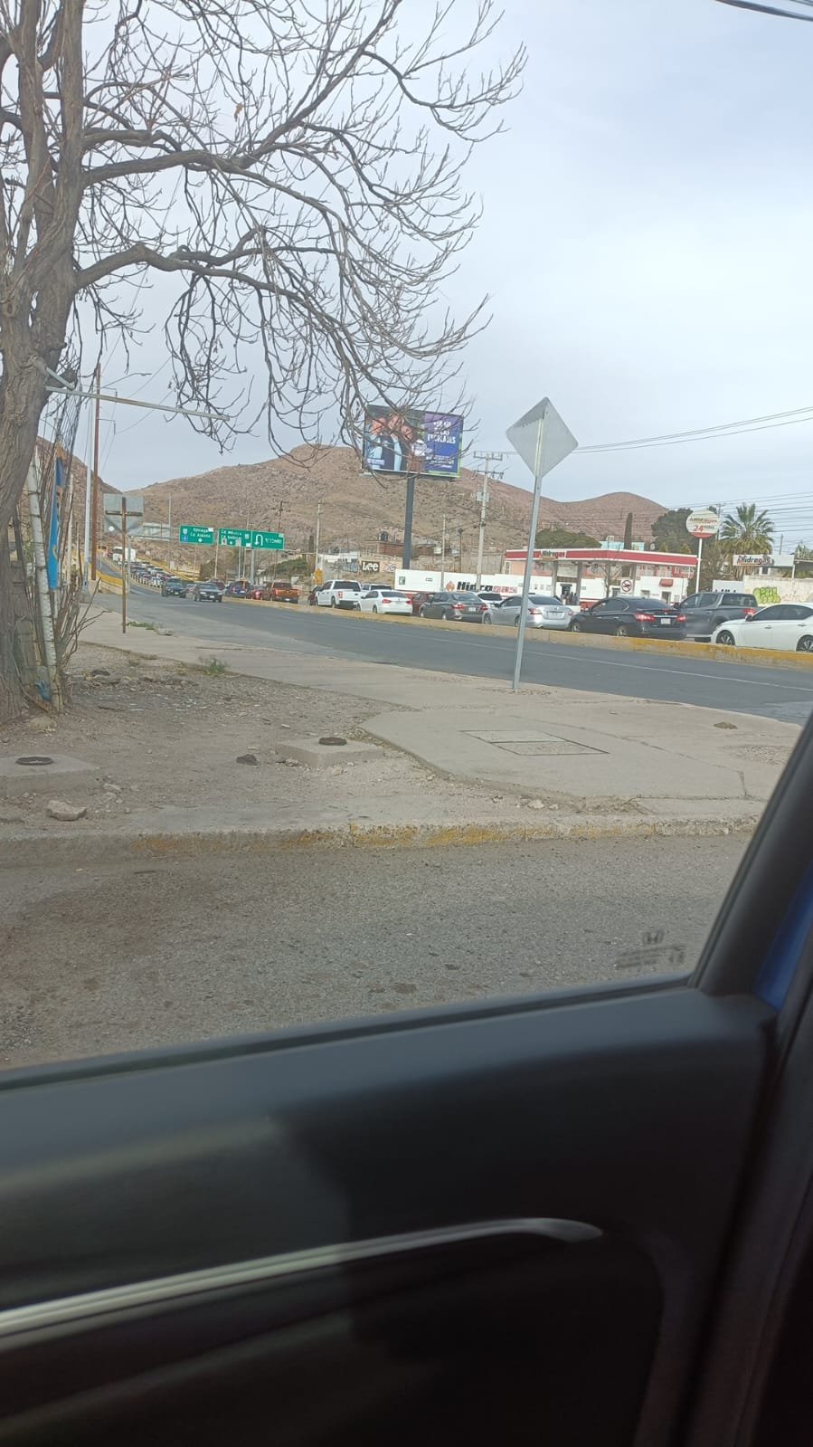 Chihuahua, Chih.- Un camión de basura terminó volcado en la salida a Aldama, provocando un embotellamiento kilométrico que puso a prueba la paciencia de los automovilistas. Desde el inicio del puente, la fila de vehículos se extendió sin tregua, complicando el tránsito en la zona.