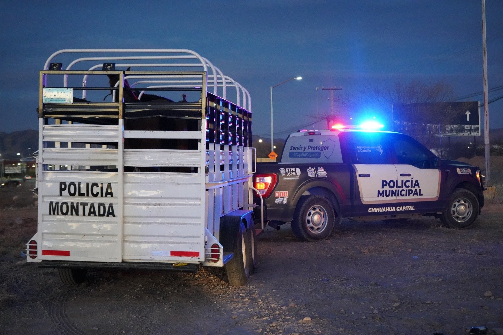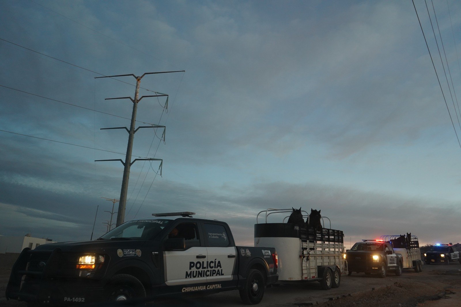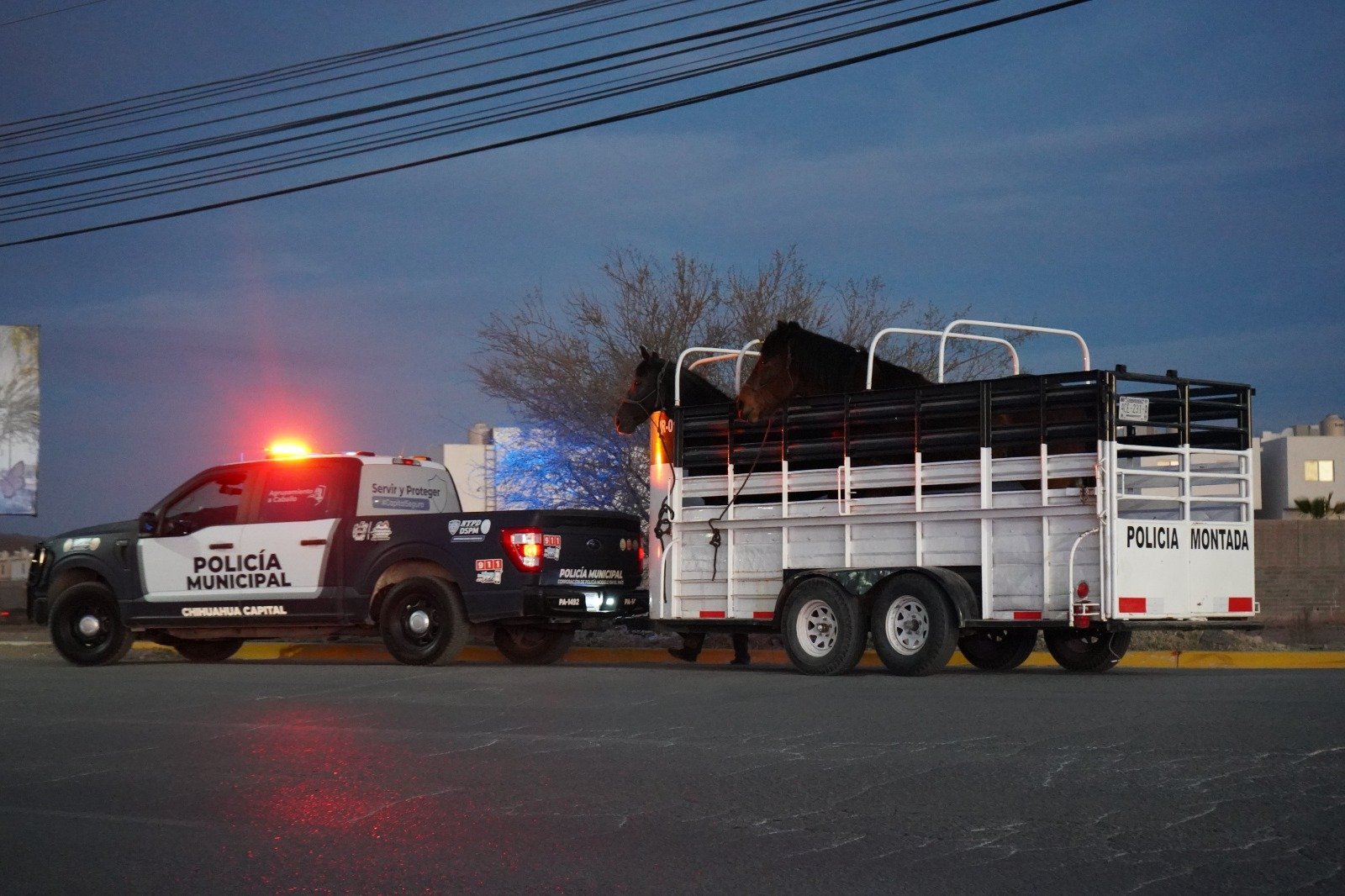 Chihuahua, Chih., a 26 de febrero de 2025.- El Gobierno Municipal, a través de la Dirección de Desarrollo Rural, acompañado de la Policía Montada, realizó un operativo para la captura de animales mostrencos, es decir, vacas y caballos que se encuentren en la vía pública y vialidades, a fin de evitar accidentes y molestias.