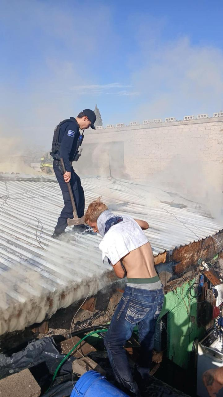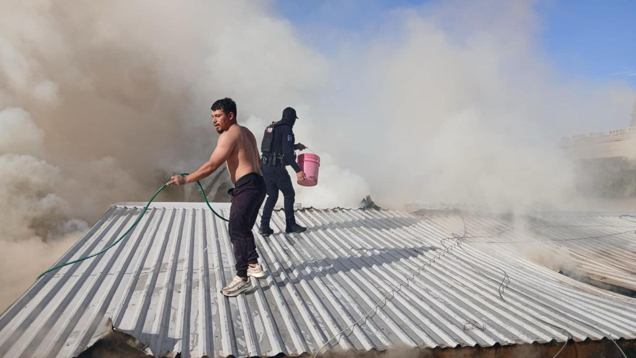 Ciudad Juárez.- Un grupo de policías municipales y vecinos de la colonia Revolución Mexicana lograron controlar un incendio en una vivienda utilizando cubetas con agua, luego de que un boiler de paso explotara y provocara que el techo comenzara a arder.