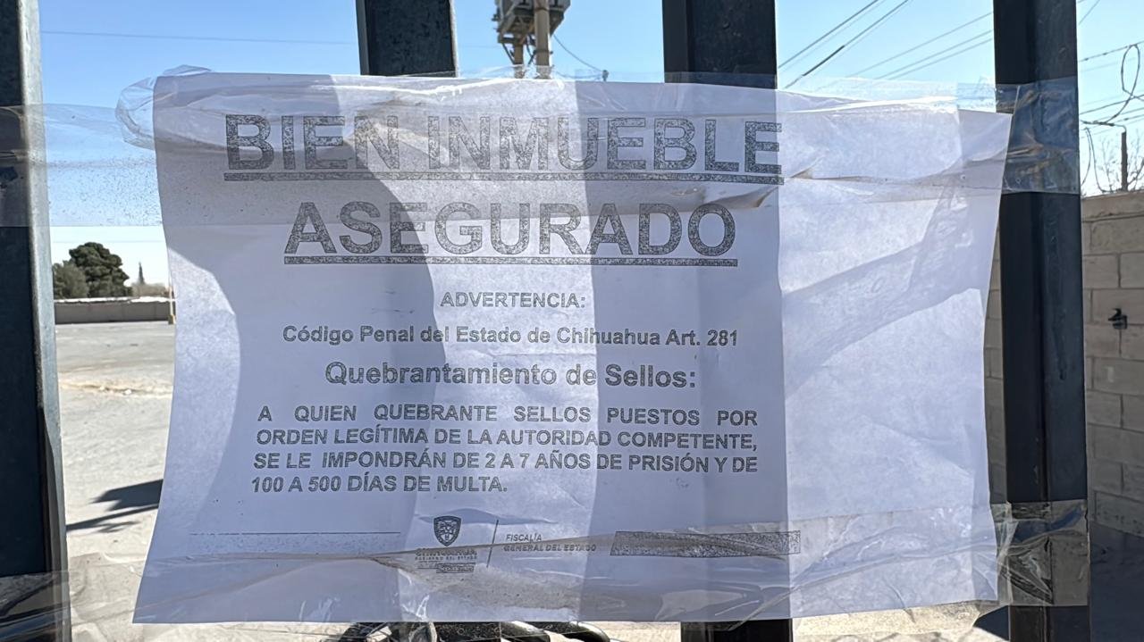 En el acceso principal del inmueble se colocaron avisos que advierten sobre las sanciones establecidas en el Código Penal del Estado de Chihuahua, artículo 281, en relación con el quebrantamiento de sellos.