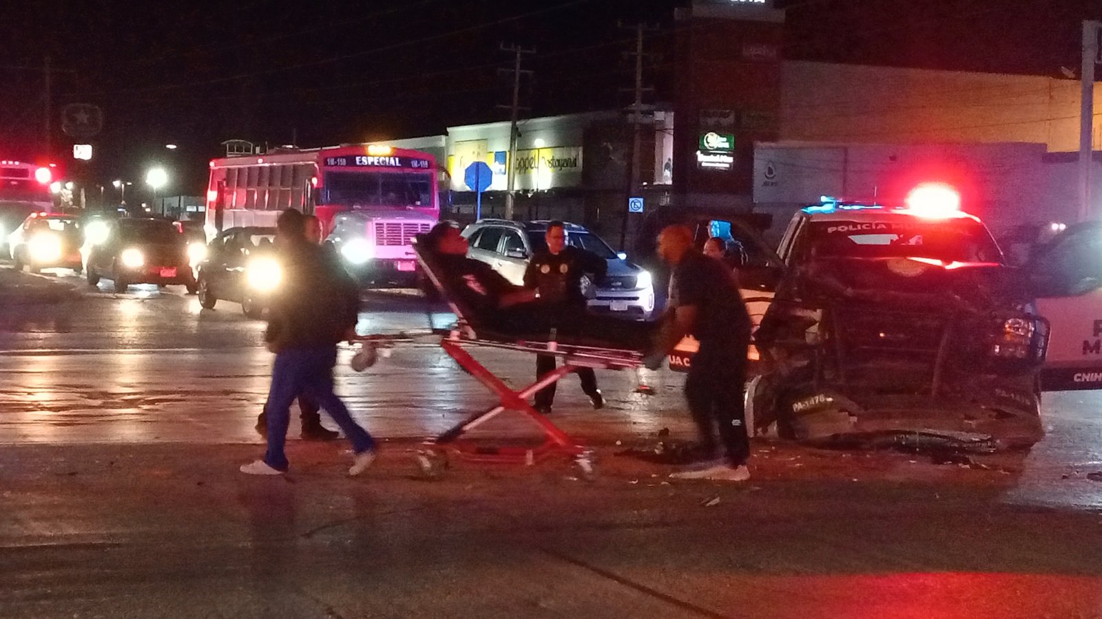 Chihuahua – Un agente de la Policía Municipal protagonizó un fuerte choque sobre la Avenida Dostoyevski cruce con Avenida de las Industrias al norte de la ciudad de Chihuahua.