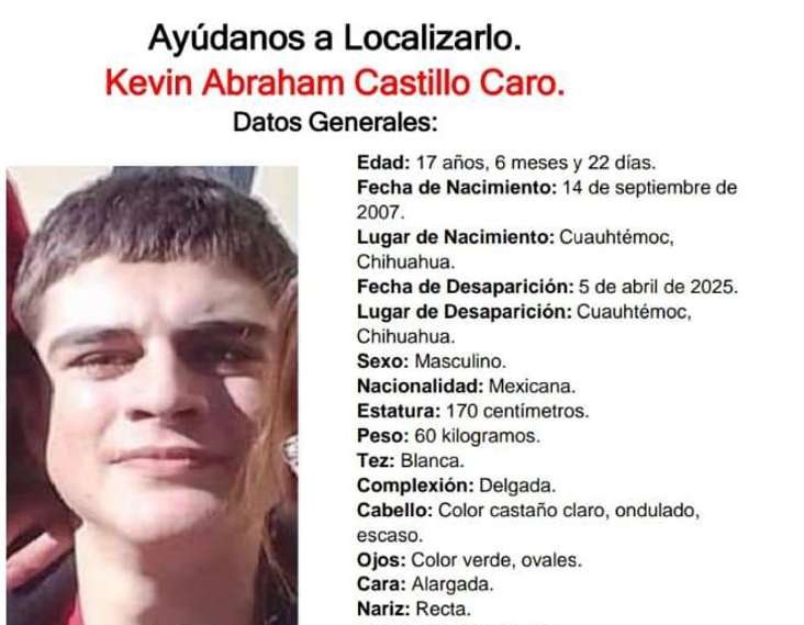 Buscan a Kevin Abraham Castillo Caro, desaparecido en Cuauhtémoc 7 abril, 2025 No hay comentarios Leer más