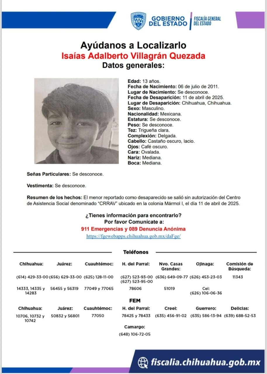 H. Cd de Chihuahua.- Ocho adolescentes se fugaron del Centro de Rehabilitación y Reinserción para Adolescentes Varones (CRRAV), lo que activó una intensa búsqueda por parte de las autoridades estatales.