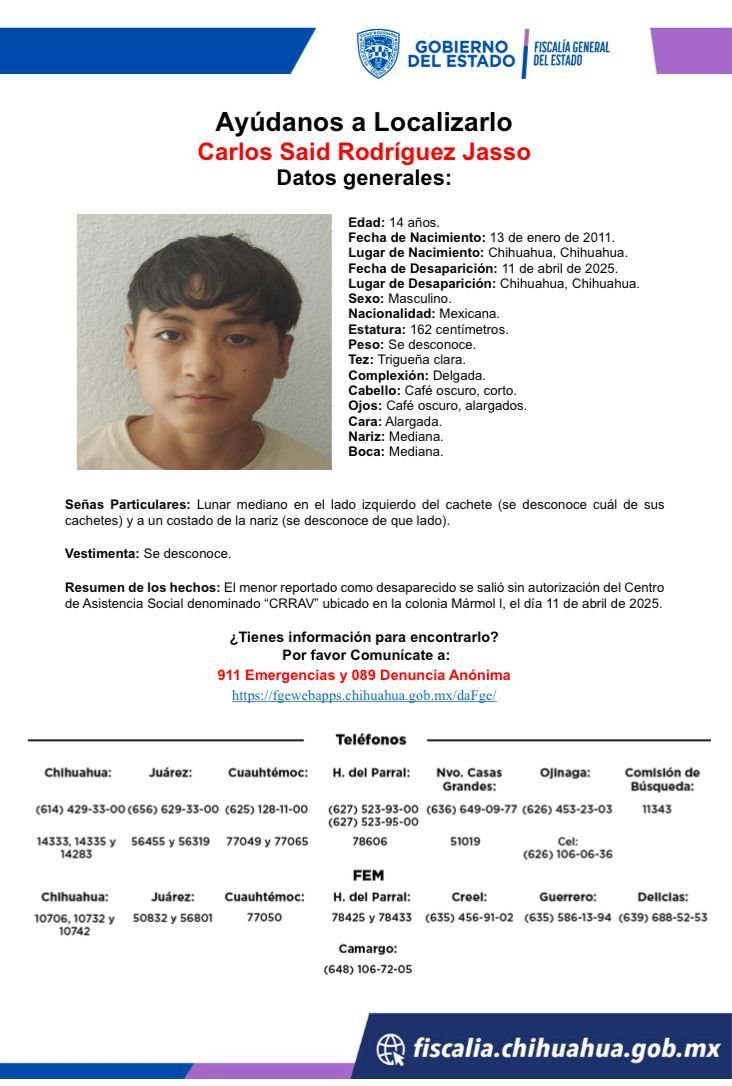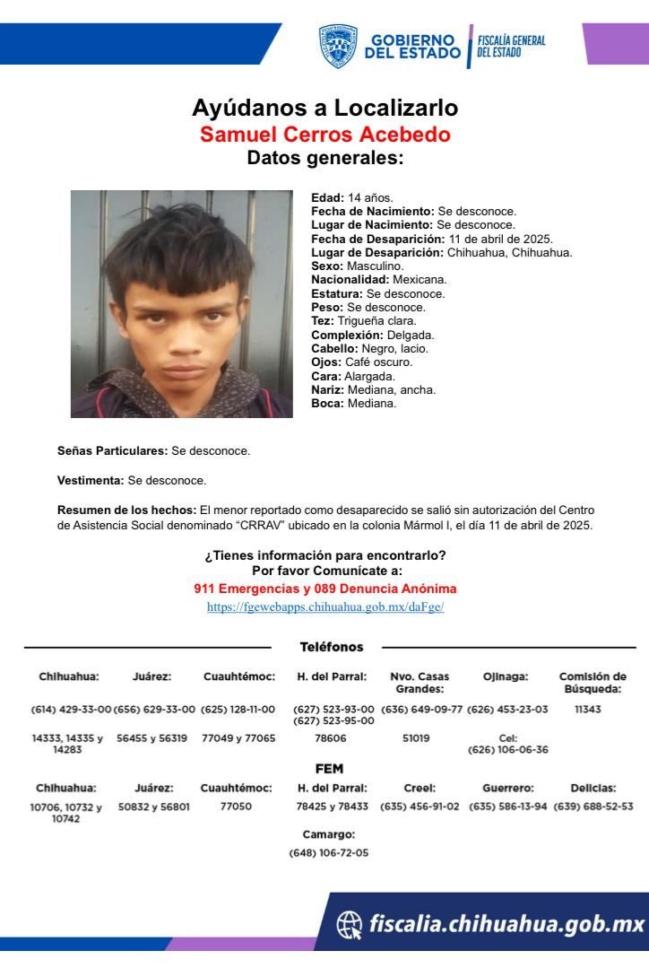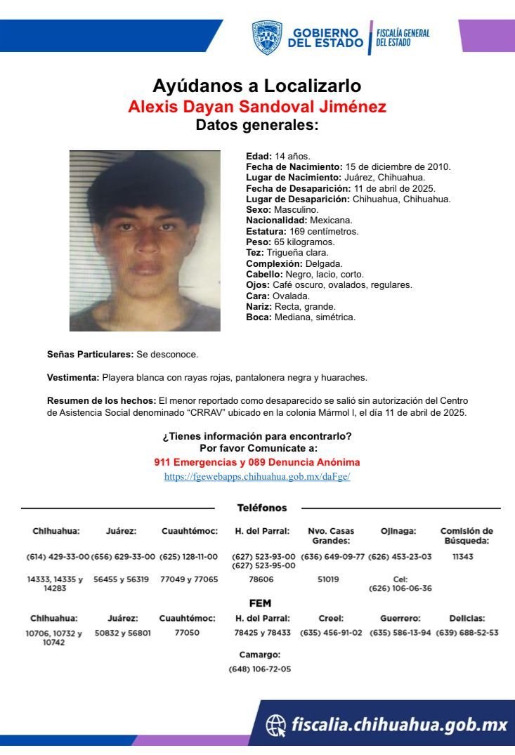 La Fiscalía General del Estado pide a la ciudadanía colaborar con cualquier información que ayude a encontrarlos, llamando al 911 o al 089 de forma anónima.