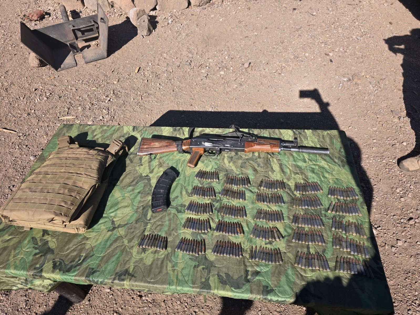 En este actuar se logró el aseguramiento de 1 fusil calibre 7.62×39, 1 cargador con 30 cartuchos útiles del mismo calibre, 230 cartuchos sueltos calibre 7.62×39, 1 chaleco balístico, así como 2 placas balísticas.