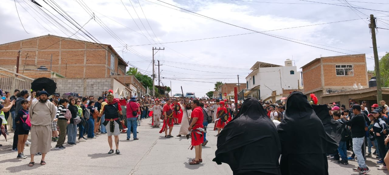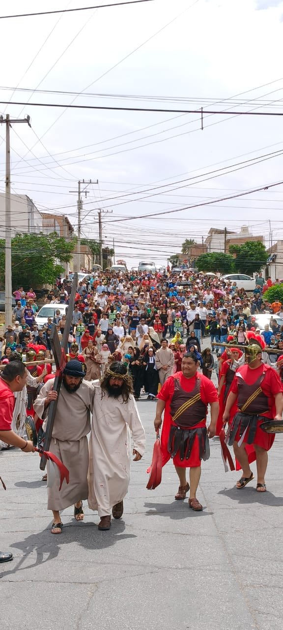 Chihuahua, Chih.- Cientos de ciudadanos se dieron cita para conmemorar con el Vía crucis o viacrucis (en latín: “camino de la cruz”) en la colonia San Rafael, donde se notó una gran presencia y aprobación por parte del público durante la escenificación de la crucifixión de Jesús de Nazaret.