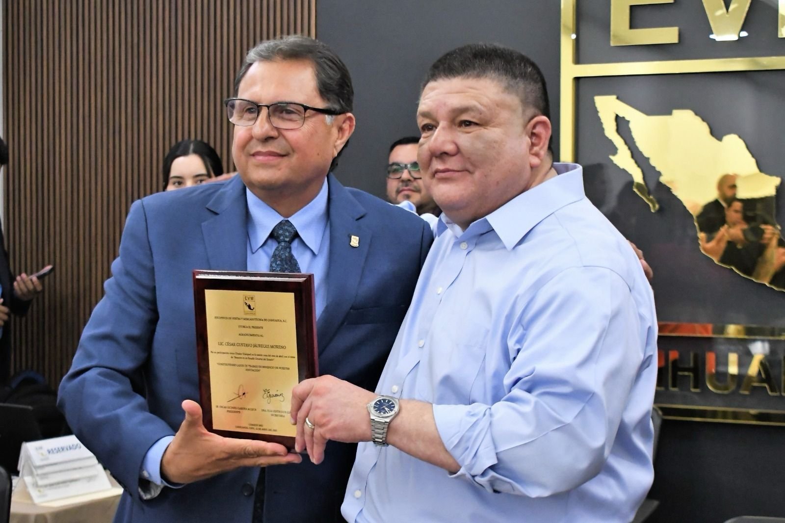 Chihuahua, Chih.- El Fiscal General del Estado, César Jáuregui Moreno, presentó ante integrantes de la Asociación de Ejecutivos de Ventas y Mercadotecnia un balance sobre la disminución de delitos en la entidad y las estrategias implementadas para reforzar la seguridad.