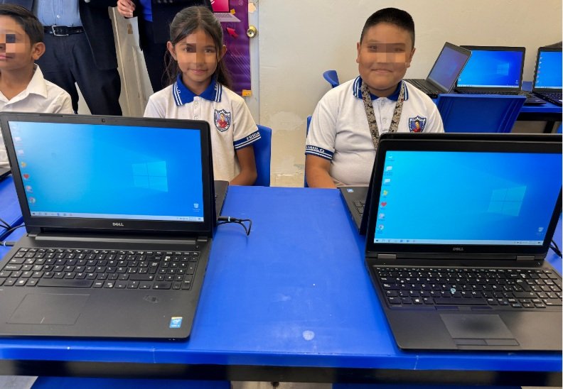 Una de las recién beneficiadas fue la primaria federal Leyes de Reforma, que recibió 16 equipos de cómputo por Grupo Cementos de Chihuahua para su aula de medios, la empresa priorizó el plantel por la cercanía con sus instalaciones, como parte de su compromiso social.