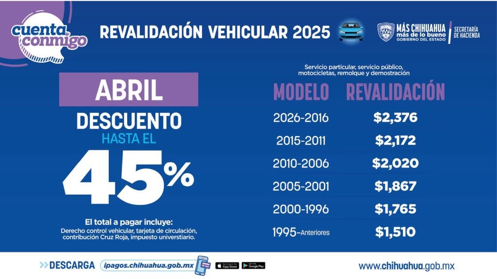 Corre a pagar tu Revalidación Vehicular con descuento: últimos días hasta el 30 de abril 24 abril, 2025 No hay comentarios Leer más