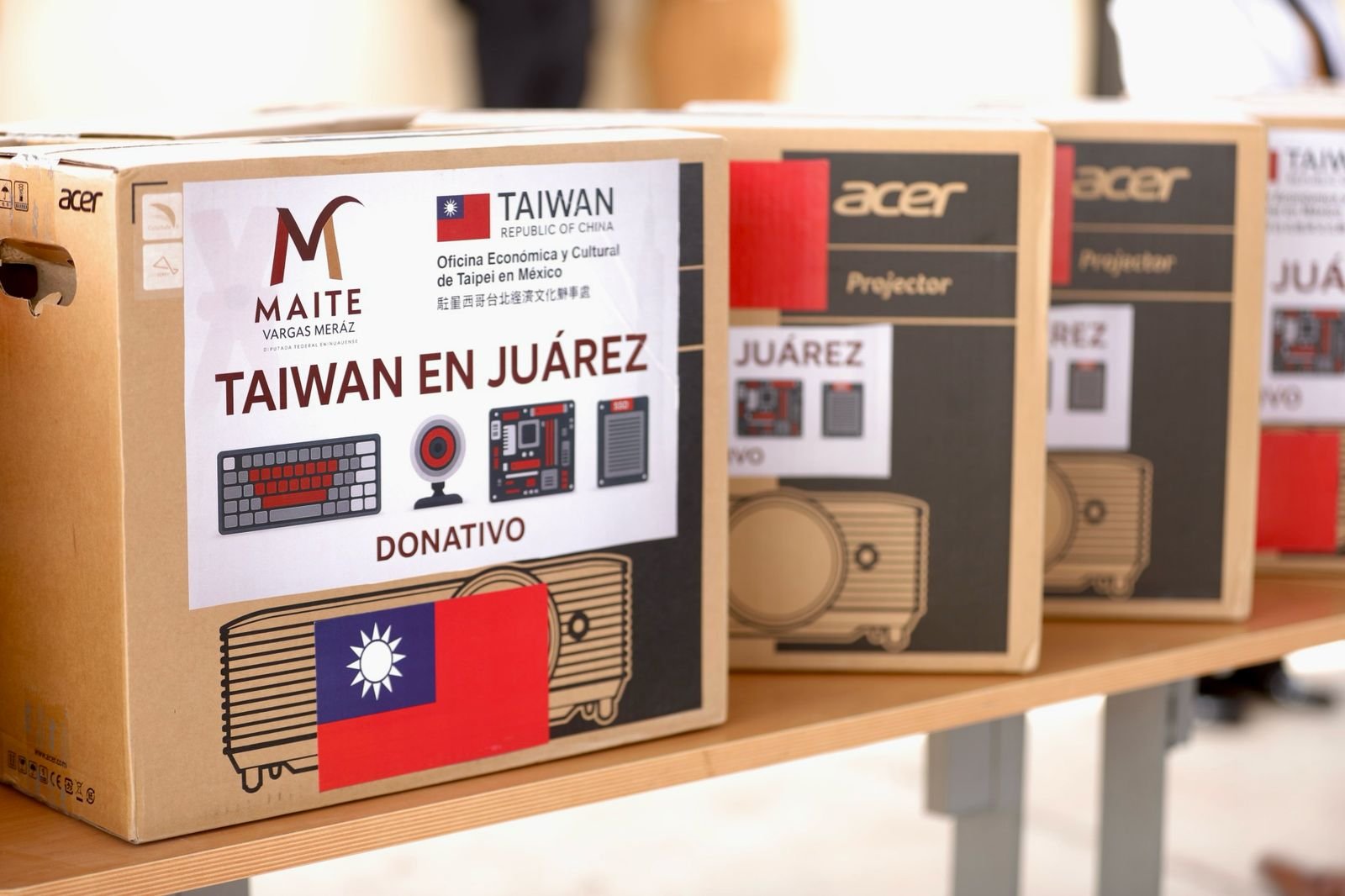 La embajada de Taiwán en México donó esta mañana 12 computadoras portátiles y 12 proyectores a escuelas públicas ubicadas en el suroriente de Ciudad Juárez.