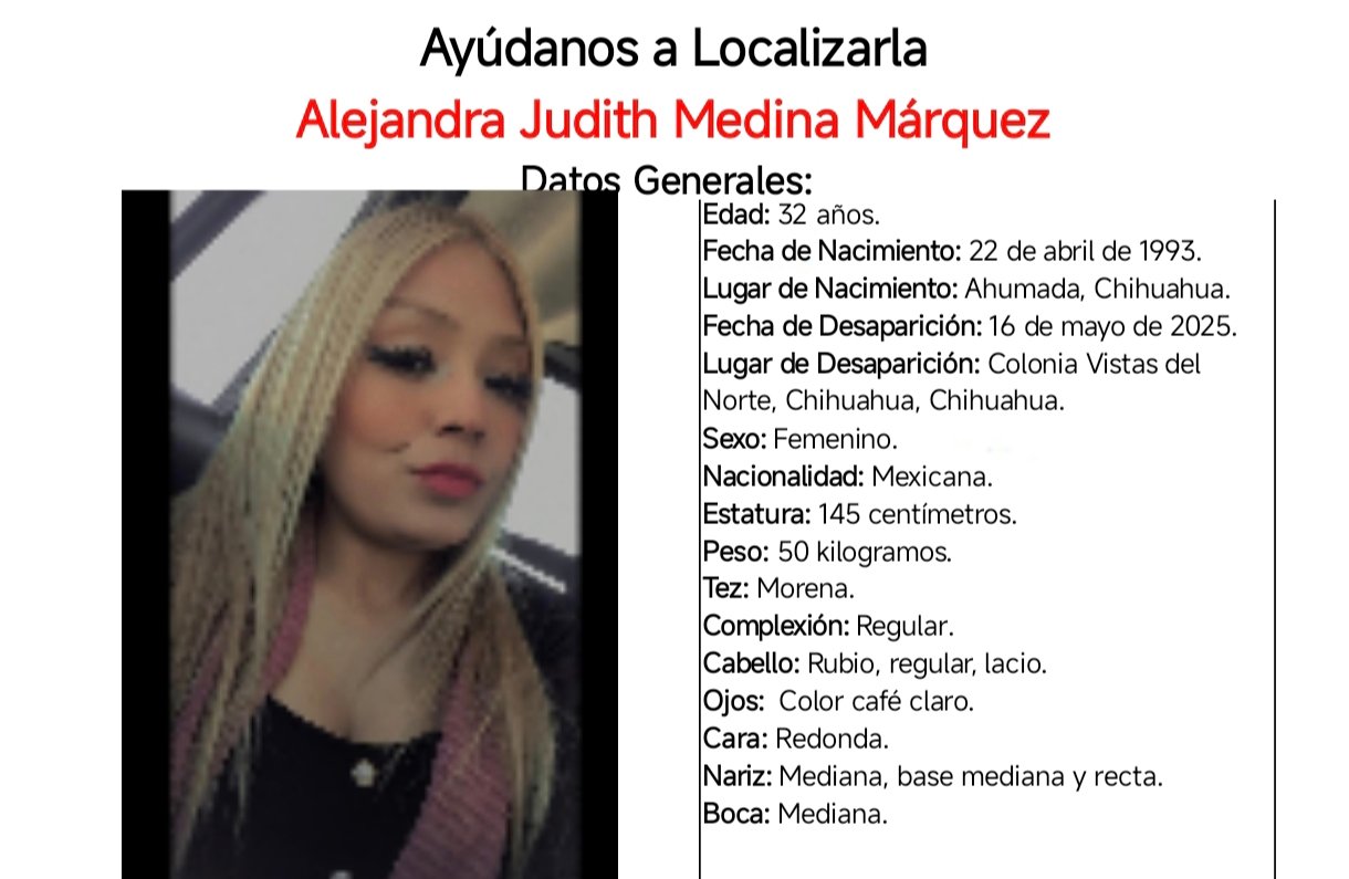 Buscan a Alejandra Judith Medina, fue vista por última vez en Vistas del Norte 17 mayo, 2025 No hay comentarios Leer más
