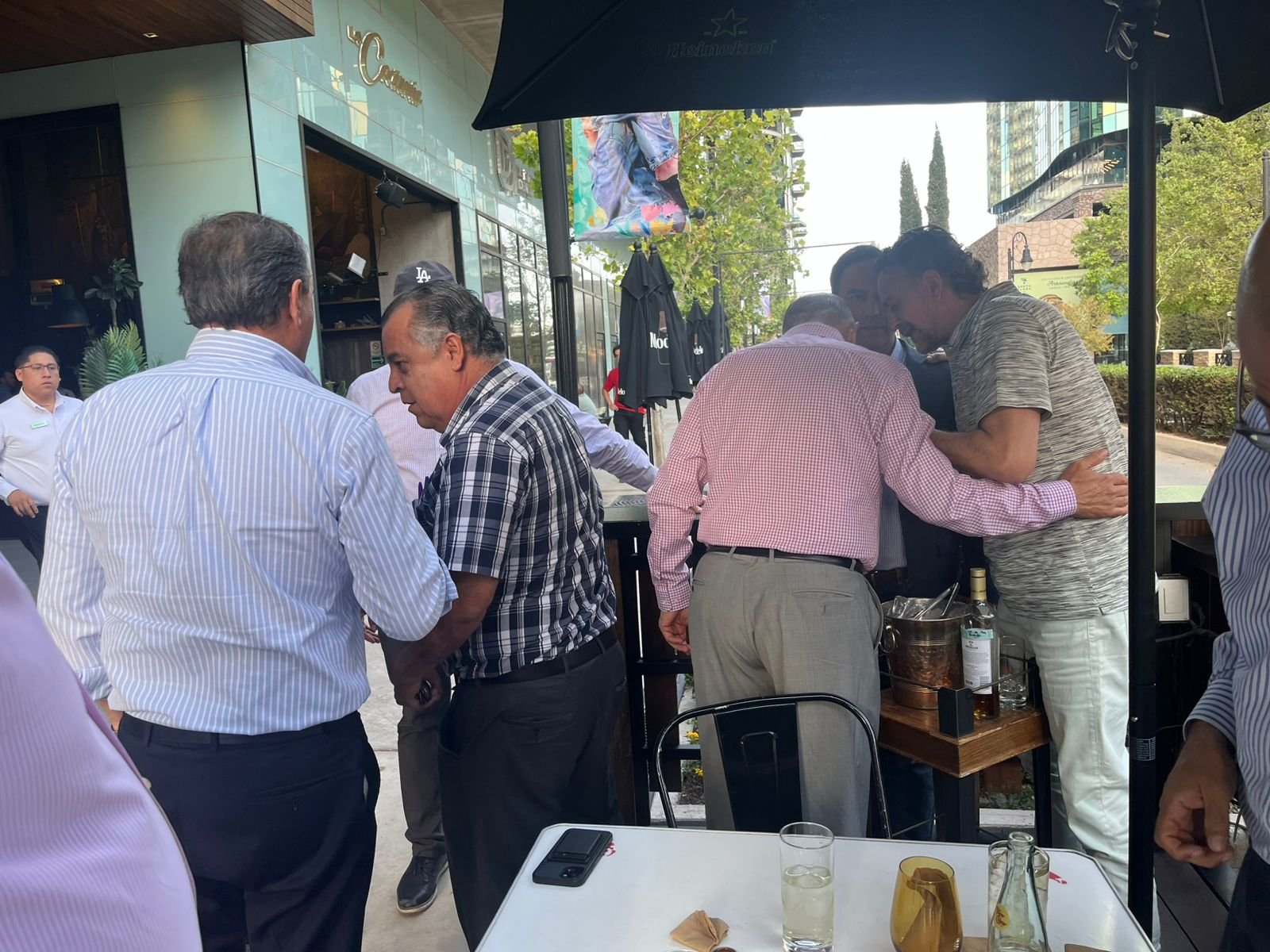 Noticias, Chihuahua.- El exgobernador César Duarte fue visto este jueves en un restaurante de alta gama ubicado en el complejo comercial Distrito 1, acompañado por el exalcalde Javier Garfio y el empresario Eduardo Almeida. La escena llamó la atención de los presentes, quienes notaron también la presencia del exauditor Jesús Esparza y de los exfuncionarios César Dajlala, Víctor Juárez y Alejandro Parra.