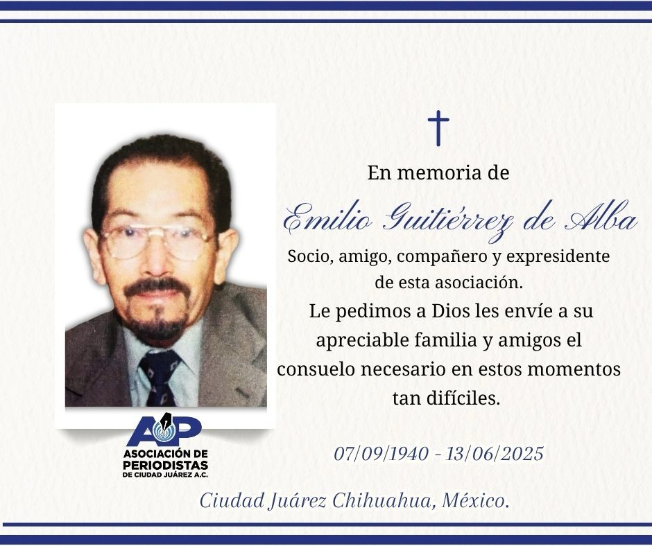 Fallece Emilio Gutiérrez de Alba, pilar del periodismo juarense 13 junio, 2025 No hay comentarios Leer más