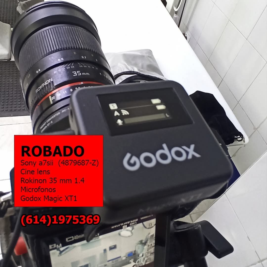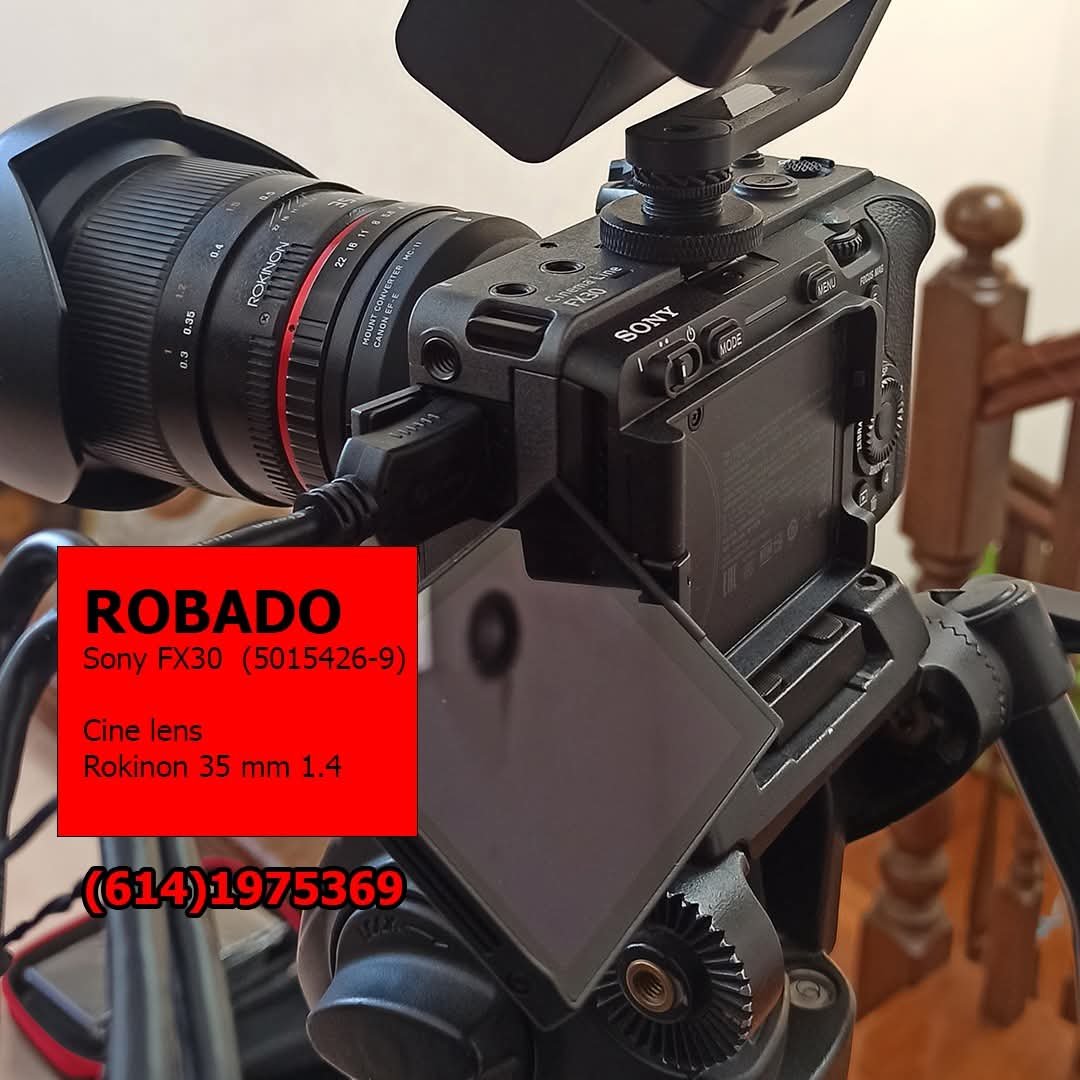 Entre los objetos robados destacan dos cámaras profesionales: una Sony FX30 con número de serie 5015426-9 y una Sony A7S II, serie 4879687-Z, además de un monitor FeelWorld 6″ F6 Plus. También fueron sustraídos diversos lentes de alto valor, incluyendo modelos Rokinon, Carl Zeiss y Sony, utilizados comúnmente en producción cinematográfica.