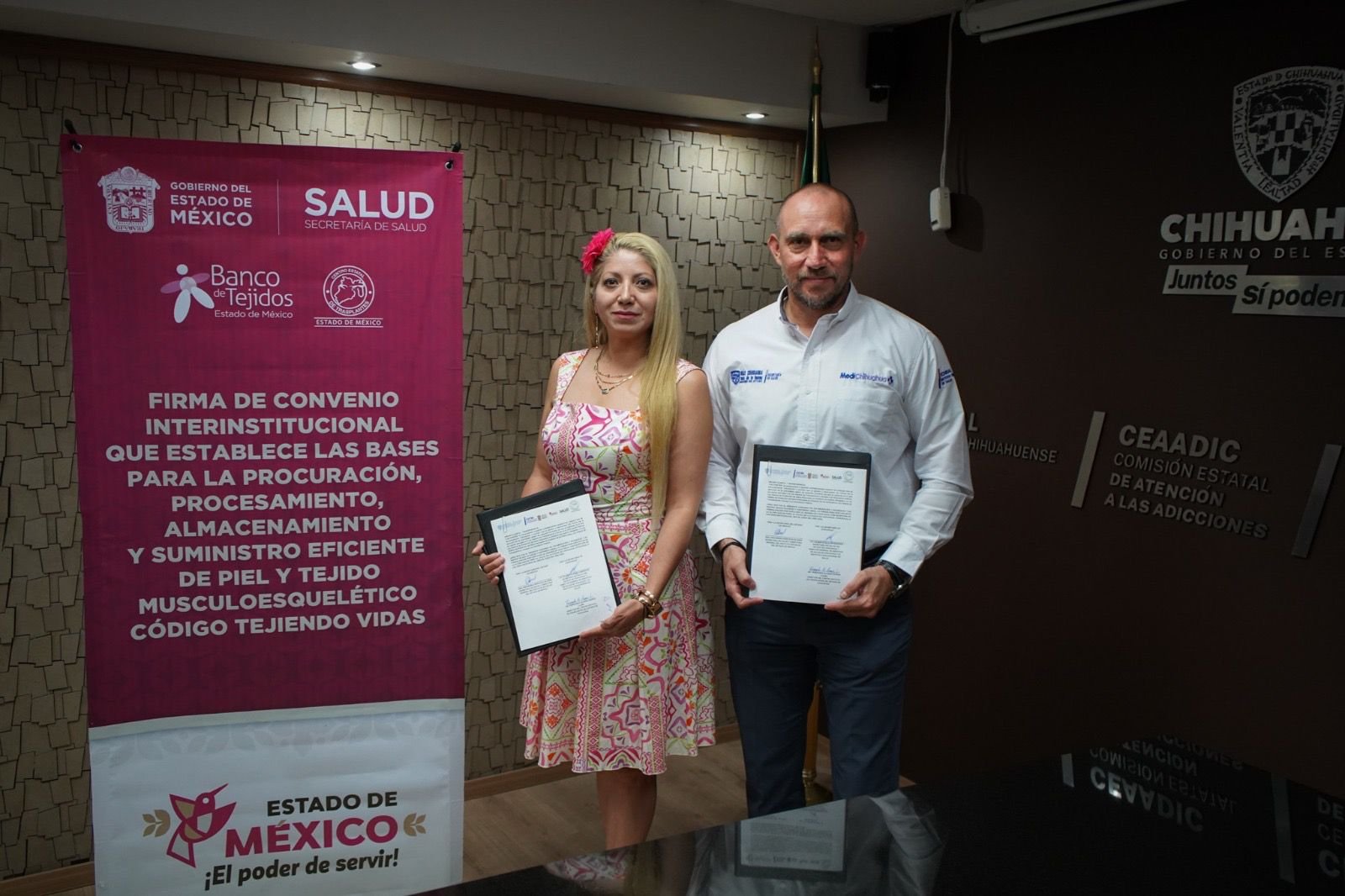 El acuerdo fue encabezado por el secretario de Salud de Chihuahua, Gilberto Baeza Mendoza, y Macarena Montoya Olvera, titular del ISEM.