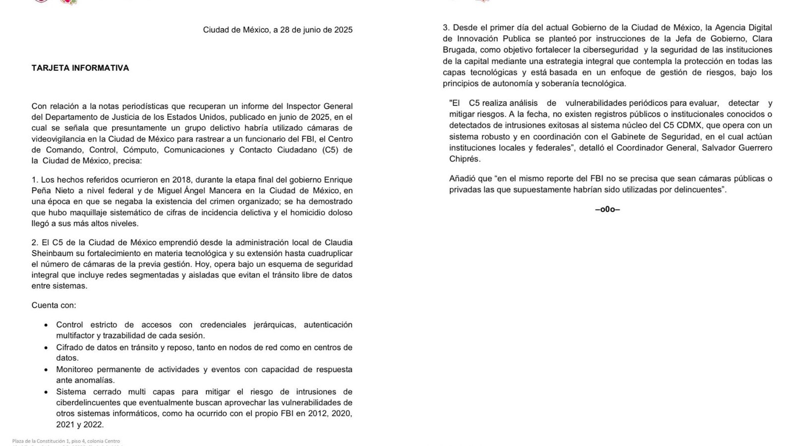Hackeo a videovigilancia no fue este año, señala C5; ocurrió en el sexenio de Peña Nieto 29 junio, 2025 No hay comentarios Leer más