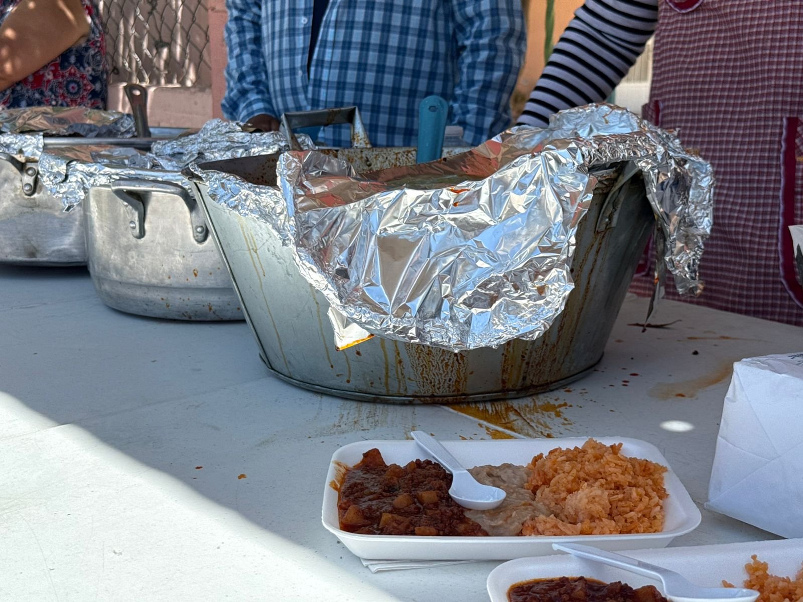 Un grupo de vecinos entregĂł alimentos gratuitos a personas que perdieron sus pertenencias tras las lluvias, en la colonia Fronteriza, afuera del jardĂn de niños AgustĂn Aveledo.