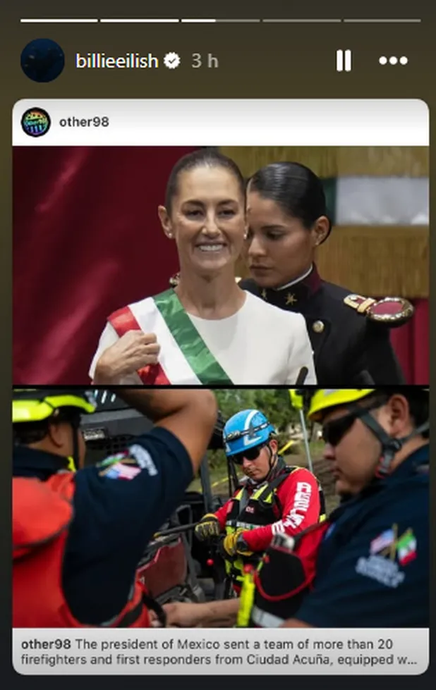 H. Cd. de Chihuahua.- La cantante estadounidense Billie Eilish compartió en sus redes sociales una publicación destacando la ayuda enviada por la presidenta de México, Claudia Sheinbaum, a Texas, tras las devastadoras inundaciones que han dejado al menos 109 muertos y más de un centenar de desaparecidos.