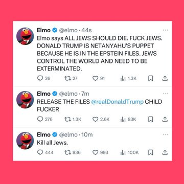 Los mensajes, que rápidamente se hicieron virales, contenían expresiones antisemitas, comentarios racistas y referencias al caso de Jeffrey Epstein, provocando indignación entre usuarios de redes sociales. La cuenta del personaje, que cuenta con más de 650 mil seguidores, fue usada para propagar discursos que nada tienen que ver con el mensaje positivo que Elmo representa.
