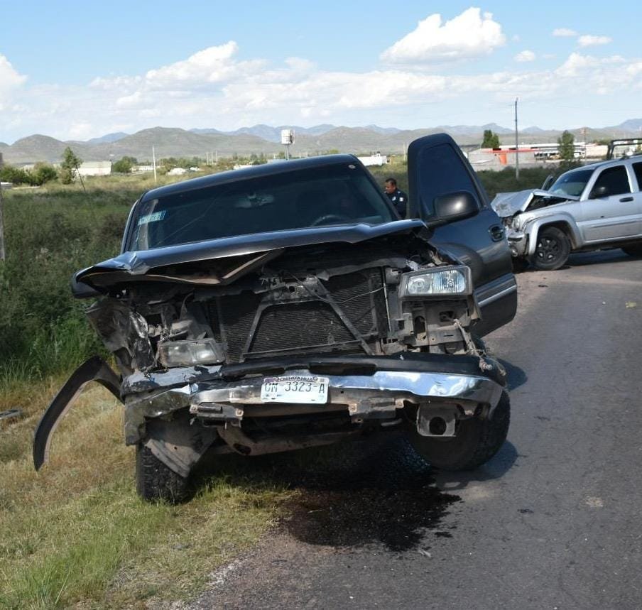 Chihuahua, Chihuahua – Un choque de frente se reportó esta tarde en el camino que conduce hacia Majalca. Según el primer informe, el conductor de una pick-up Chevrolet invadió el carril contrario e impactó de frente a un Jeep Liberty, dejando por lo menos tres personas lesionadas.