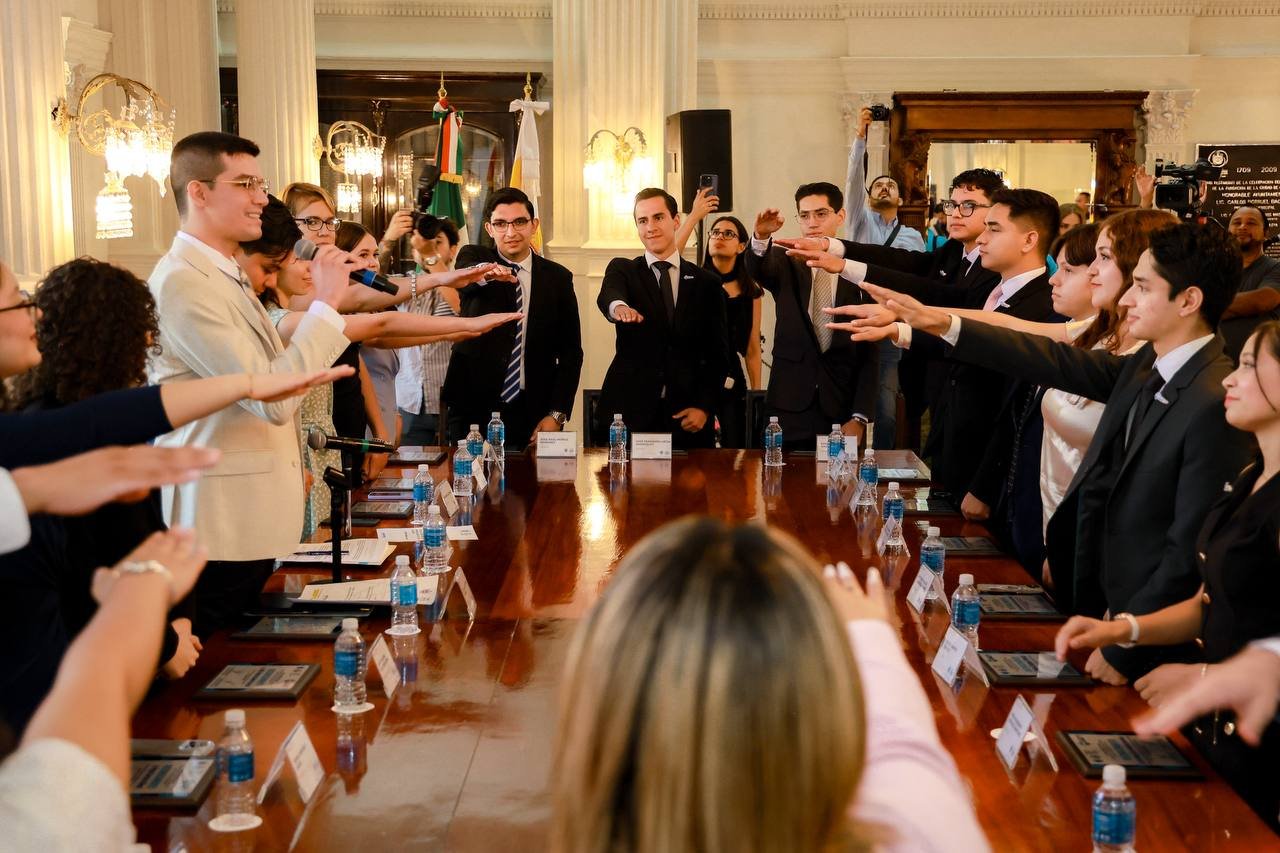 H. Ciudad de Chihuahua, Chih., a 20 de agosto de 2025.- El alcalde Marco Bonilla tomó protesta en sesión de Cabildo, a 23 mujeres y hombres jóvenes, quienes, frente al H. Ayuntamiento de Chihuahua, instalaron el “Cabildo Joven 2025” programa donde se capacita a las y los jóvenes en temas de liderazgo, comunicación, marketing político, democracia, imagen pública y oratoria.