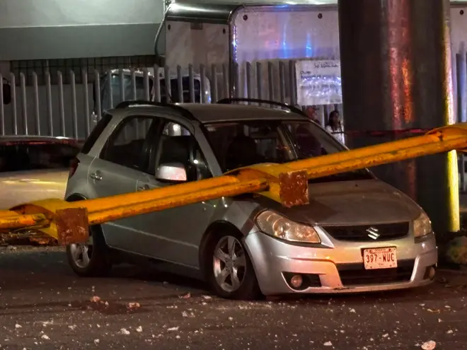 El segundo remolque del tráiler impactó la barrera de seguridad del puente y cayó sobre el cofre de un automóvil que circulaba en la parte inferior. Las llantas del remolque quedaron colgando del puente. El conductor del auto sufrió una fuerte crisis nerviosa, pero no resultó herido.