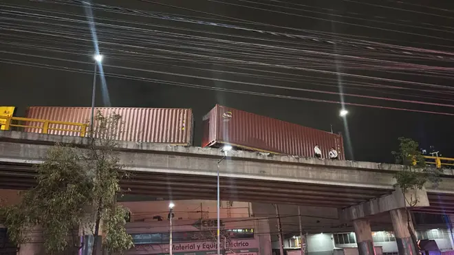 Equipos de emergencia de Naucalpan de Juárez, en el Estado de México, se movilizaron por el reporte de un tráiler con doble contenedor a punto de caer de un puente vehicular. El incidente, en el que no se reportaron personas lesionadas, ocurrió sobre la avenida Primero de Mayo.