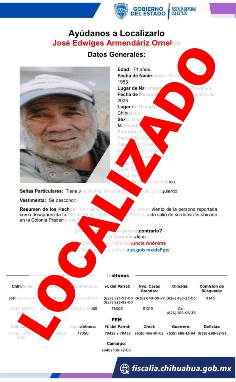 Localizan a adulto mayor reportado ausente la colonia Praderas del Sur 20 septiembre, 2025 No hay comentarios Leer más