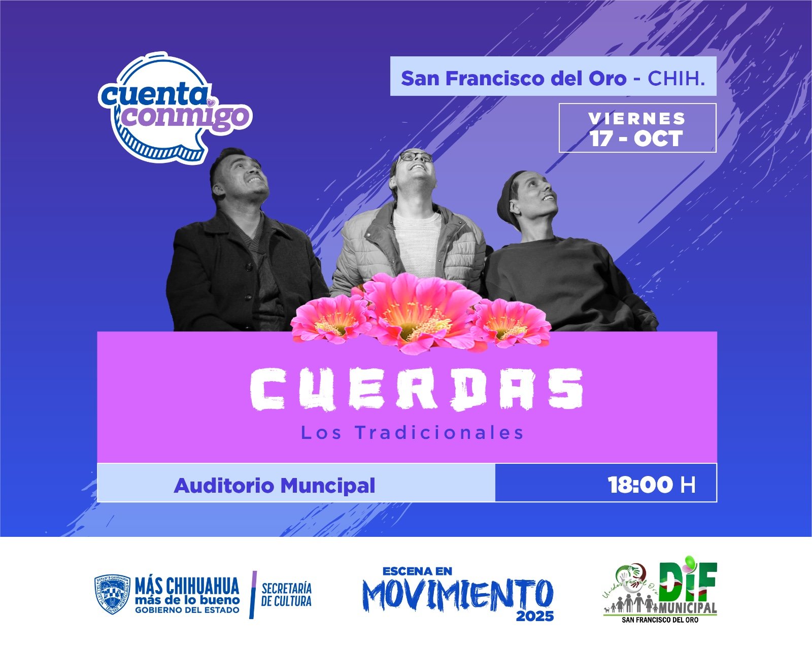 Todos los eventos son gratuitos y darán inicio este 3 de octubre con la obra “Siempre es antier” en Camargo y el concierto “Tres guitarras y una voz”.