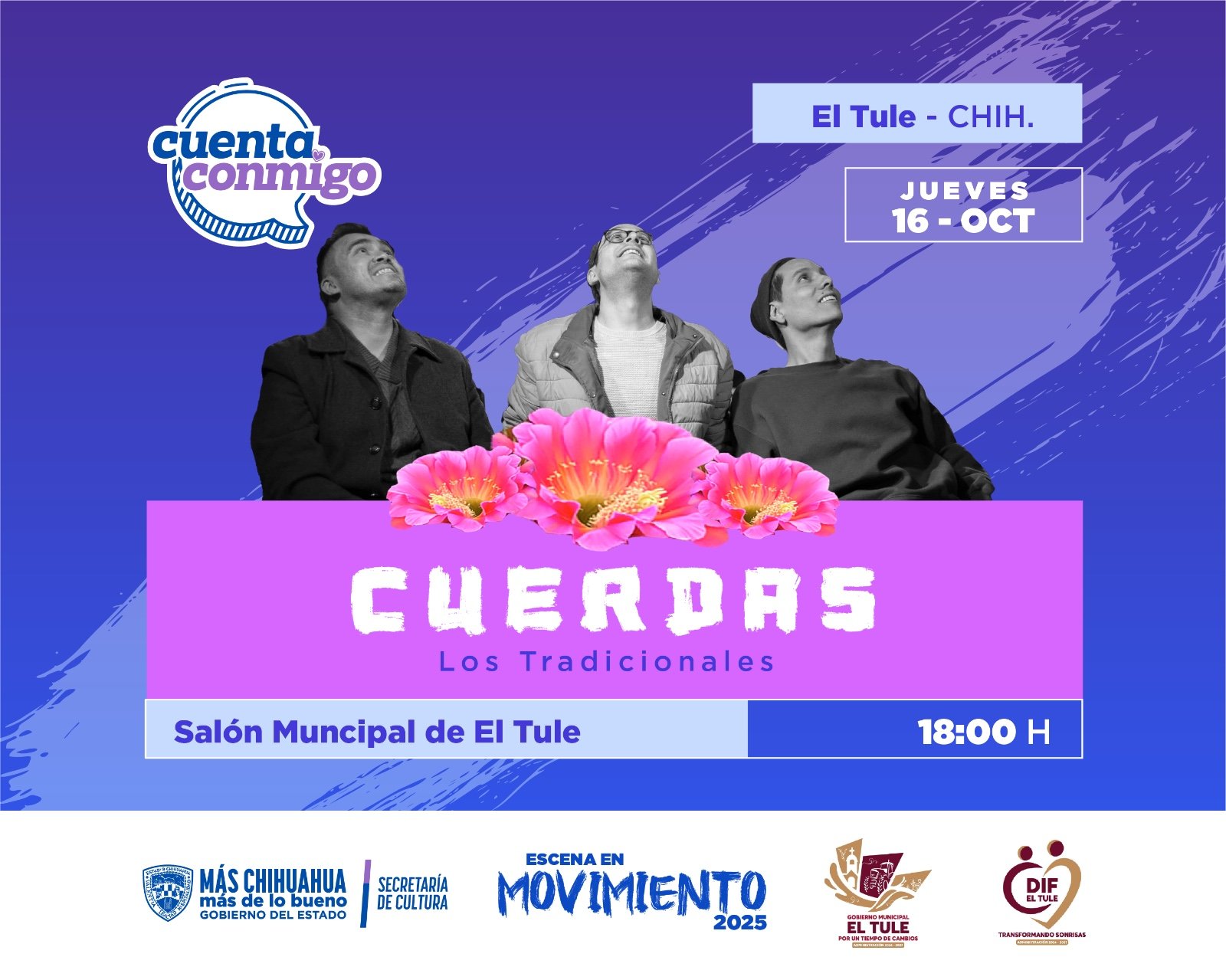 En el municipio de El Tule, la compañía teatral “Los Tradicionales”, representará la obra “Cuerdas” dirigida a niñas y niños de 12 años en adelante y padres de familia el 16 de octubre a las 18:00 horas en el Salón Municipal.