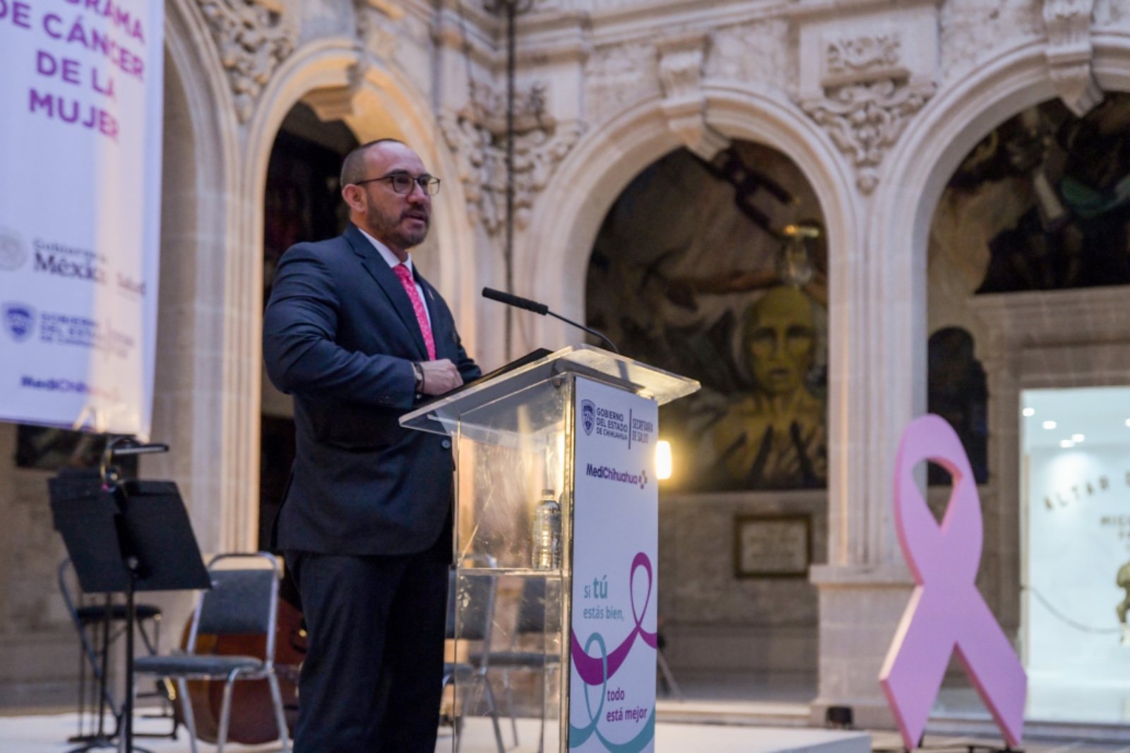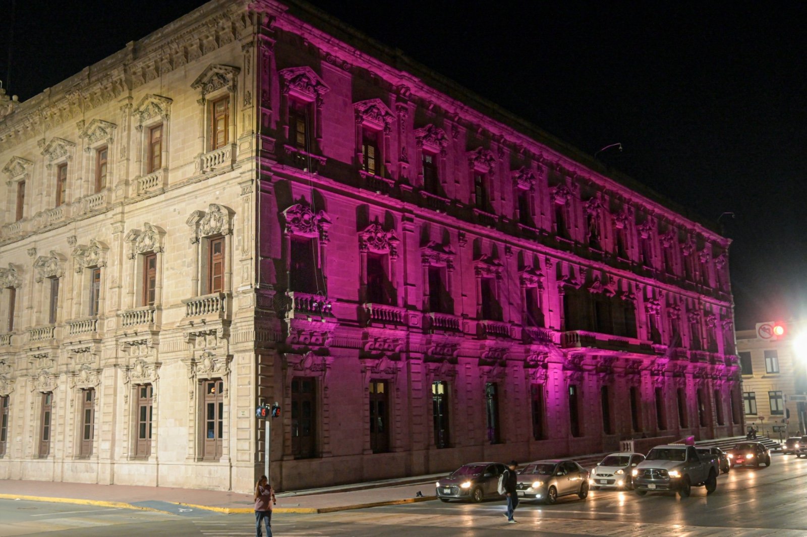 En el mes de la sensibilización y lucha contra el cáncer de mama, y el cáncer cervicouterino, el Palacio de Gobierno fue iluminado de rosa, en atención al compromiso asumido por el Estado a favor de la salud de las mujeres chihuahuenses.