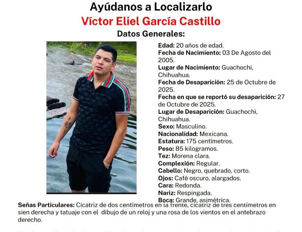 Buscan a Eliel desapareció en Guachochi el 25 de octubre 27 octubre, 2025 No hay comentarios Leer más