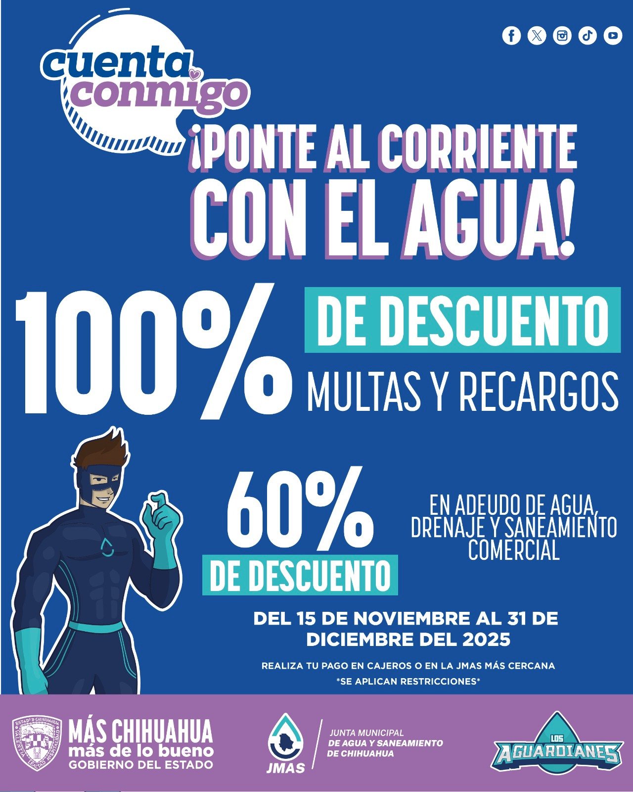 Inicia JMAS Chihuahua este sábado el programa “Ponte al Corriente” para usuarios comerciales 14 noviembre, 2025 No hay comentarios Leer más