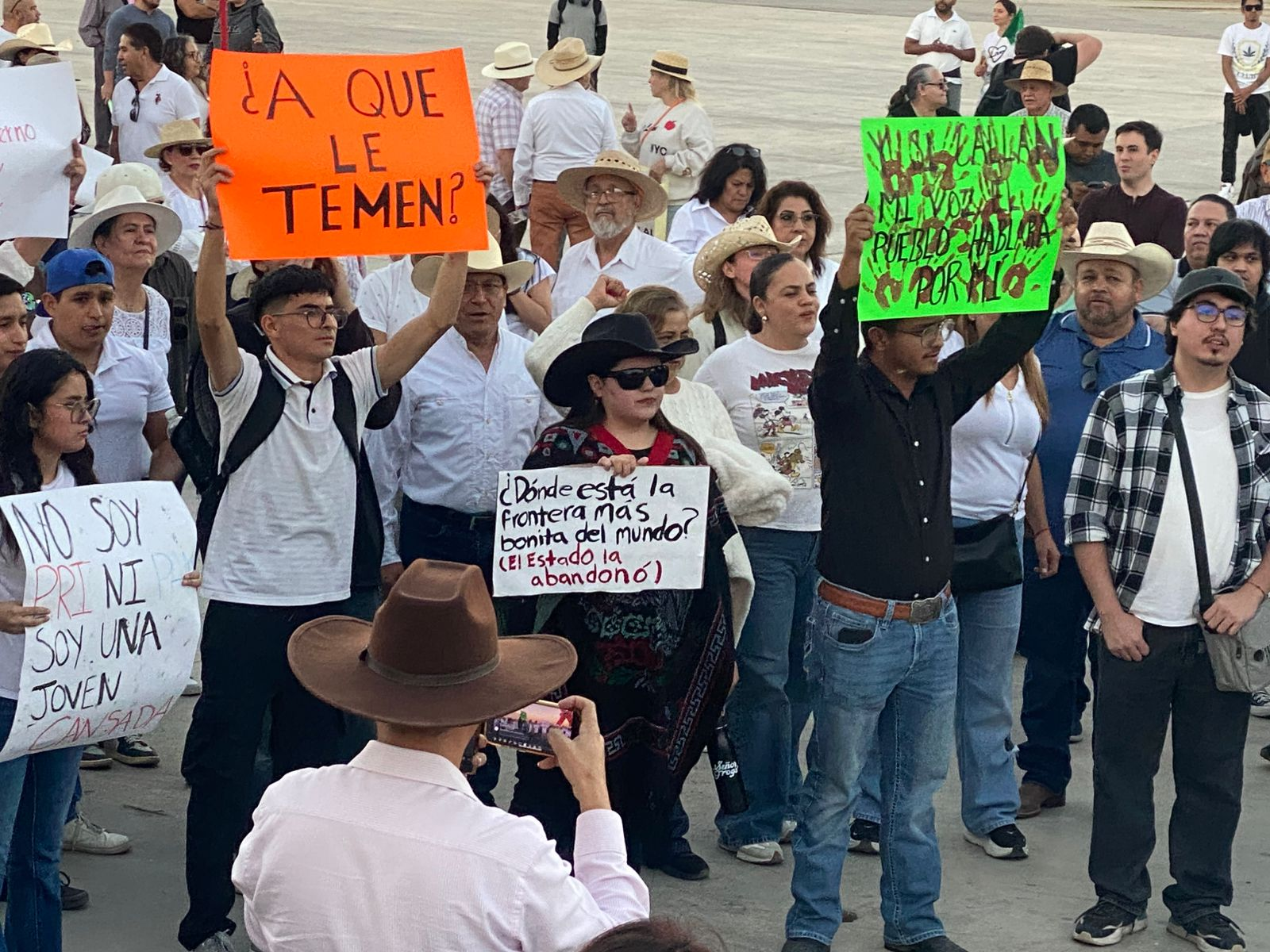 La manifestación inició alrededor de las 4 de la tarde bajo el sol fronterizo y un helicóptero que sobrevoló la zona, con participantes de diversas edades y sectores sociales portando carteles y pancartas que clamaban por “seguridad real” y “responsabilidad en el gobierno”. Los organizadores, un colectivo ciudadano no partidista, enfatizaron que el objetivo era presionar a los gobernantes para que asuman sus atribuciones constitucionales en materia de protección ciudadana, en un contexto de violencia recurrente en el país. “No venimos a pelear, venimos a exigir que hagan su trabajo”, declaró una de las voceras al inicio del evento, resumiendo el tono sereno pero firme de la protesta.