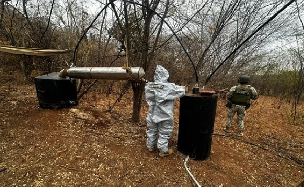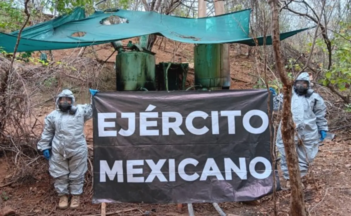 Sinaloa.- El Ejército Mexicano y la Guardia Nacional desmantelaron un narcolaboratorio clandestino en las cercanías del poblado de Bacamacari, en Mocorito, como parte de la Estrategia Nacional de Seguridad Pública. Durante un operativo de vigilancia realizado el 5 de diciembre, personal militar ubicó el sitio y aseguró 170 kilogramos de metanfetamina, más de 1.5 toneladas de químicos sólidos, 29 mil litros de precursores líquidos y diverso equipo utilizado para la elaboración de drogas sintéticas, incluyendo reactores, condensadores y secadoras. Todo lo decomisado fue puesto a disposición de las autoridades para las investigaciones correspondientes, destacándose que la intervención se realizó con estricto apego a la ley.