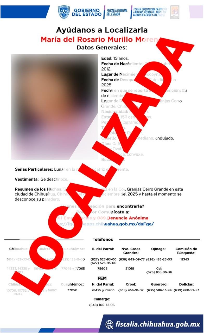 Localiza FEM a Adolescente que Contaba con Reporte de Desaparición 7 diciembre, 2025 No hay comentarios Leer más